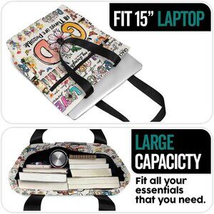 Features: This roomy tote measures 15 x 14.5 x 5 inches, making it perfect for carrying everything you need — from your laptop to your daily essentials. The sturdy double handles are comfortable to hold or sling over your shoulder with its 11-inch handle length. With a spacious main compartment, zipper closure, and multiple pockets, including a front pocket for a tablet, it’s super functional for work, errands, or travel.