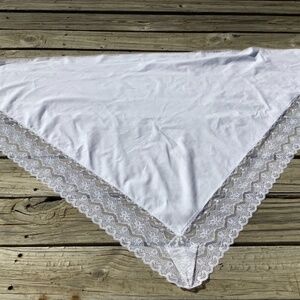 Large White Shawl with Lace Orthodox Wedding Headscarf TriangleScarf Solid White