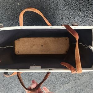 leather straps show some patina and wear. vinyl has some marks and stains but is structurally intact and strong.