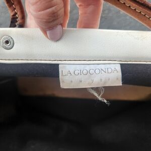 Large White and Brown Leather and Vinyl Utility Tote Bag