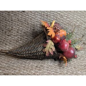 Large Wicker Basket Cornucopia Horn THANKSGIVING Harvest Fall Centerpiece Vtg.