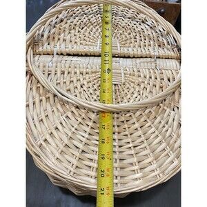 Large Wicker Picnic Basket Double Lids Handles Green Check Apple Fabric Lining Cottagecore Grannycore