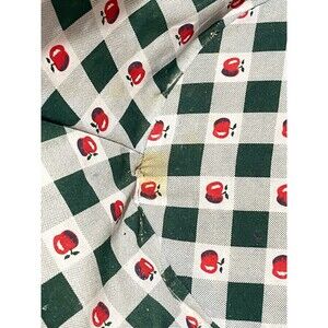 This cute picnic basket can open from either side with its double lids. Carrying is easy with double handles. And is lined in an adorable green & white gingham plaid print fabric with red apple graphic.