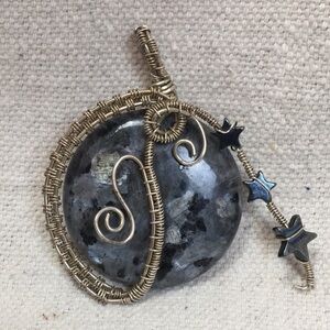 Large Wire Wrapped Granite Pendant w Hematite Star