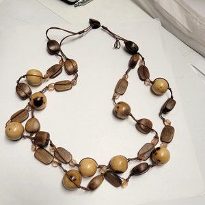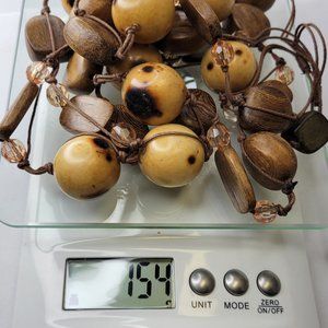 Large Wood Inspired Earthtone Beaded Long Statement Necklace