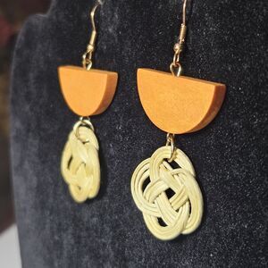 These Large Wood Knotted Dangling Earrings feature a unique knot design, making them a stylish and eye-catching accessory. The dangle/drop style adds movement and interest to the earrings, while the wood material adds a natural touch to the overall look. Each earring measures approximately 3 inches in length, making them a statement piece that can easily elevate any outfit. Perfect for those who appreciate unique and trendy jewelry options.