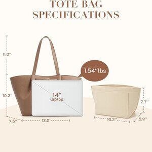 Large Work Tote Bag for Women with Felt Organizer Insert PU Leather Spacious