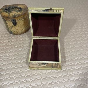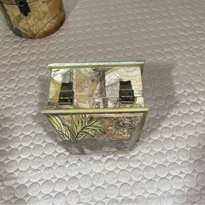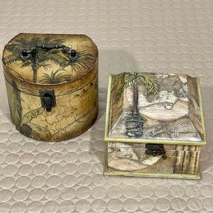 Please see photos for wear and condition. genuine wood decorative, palm tree, map, design boxes
