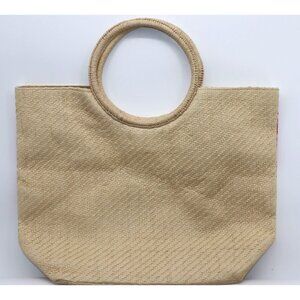 Large Woven Straw Tropical Palms Beach Spacious Bag Circular Handles Sun Sand