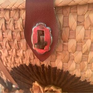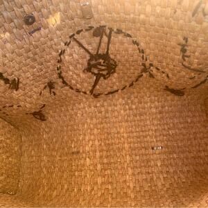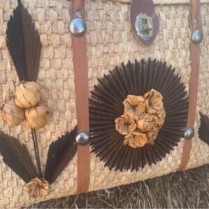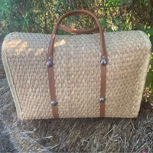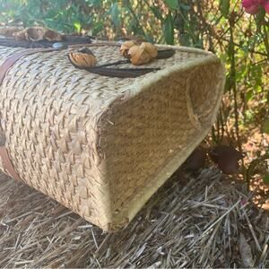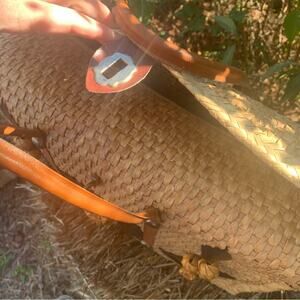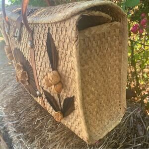Large Woven Tote Wicker Rattan Vintage Leather Handwoven Mexican Tote Bag