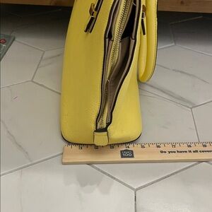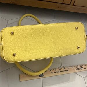 Brighten your style with this chic yellow leather handbag. Perfect for any occasion.