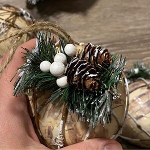 Large birch bark rustic glitter snowy holiday Christmas tree Ornaments set of 4