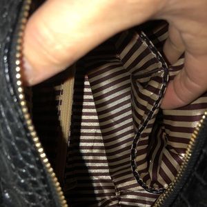 Large black Doctors bag Faux alligator embossed removable long crossbody strap