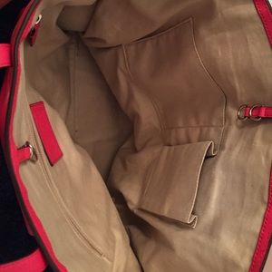 Beautiful deep pink purse with lots of space. There are a few marks on back of purse.