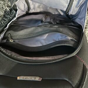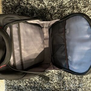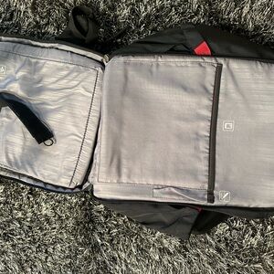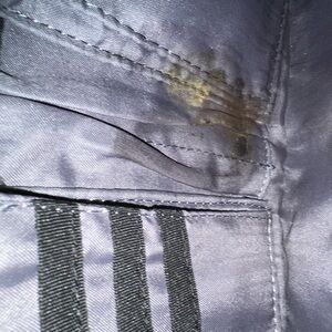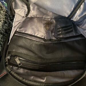 This bag has been used, but there’s no damage no rips no tears. There’s one stain on it from a small part that had a little bit of oil on it, could be cleaned by a dry cleaner.