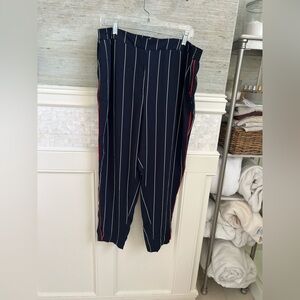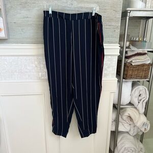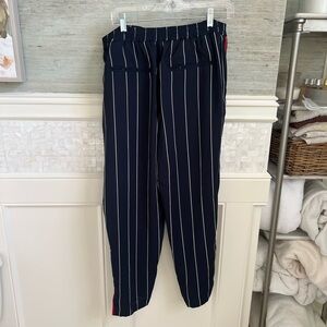 Large ett:twa Anthropologie pull on cropped pants navy white stripe red piped