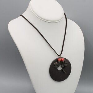 This is a brand new necklace with a fancy shaped pendant made out of wood and it is approximately 2-1/2" wide in diameter. The necklace is 36" long and its finished weight is 15 grams.