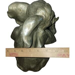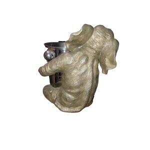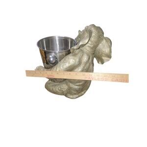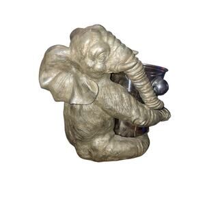 Large gray elephant ice bucket holder with silver metal bucket. 13” tall
