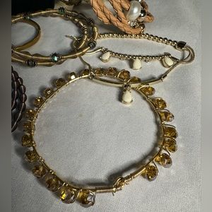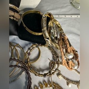 19 goldtone and sparkly rhinestones bracelets. Bangles and stretch and two cuff style.