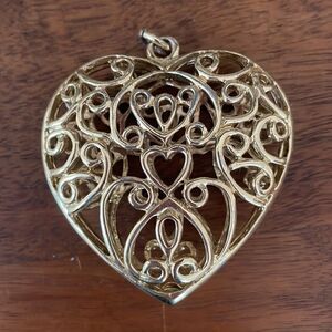 Large heart shaped gold tone filigree pendant