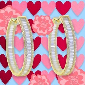These large baguette infinity hoops in gold tone ,super quality, are also available in white gold tone