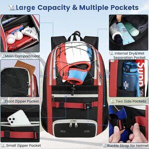 This adjustable buckle helmet strap allows your baseball helmet to be store on the outside of the bag, freeing up the inside to store even more baseball equipment.