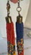 This is a monster seed bead necklace from my mother in law’s collection. This is old and never worn as I took it off the original paper hang tag. The necklace is gorgeous with mustard yellow, mint green, blue, rust red, black seed beads and there are too many strands to count. This necklace is heavy and quite substantial.