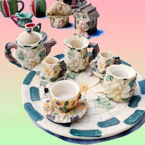 This lot of extremely cute and unique resin fairy garden items is going to be of interest to anyone who dabbles in the hobby. The only thing missing from this lot is the chimney for one of the little pig houses (the straw house).