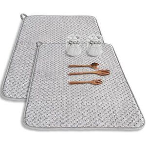 🧿Each kitchen drying mat measures 24*17 inches and is able to hold more pots,pans,plates and other utensils.XL dish drying mat is great for kitchen counter and bathroom countertop use.
