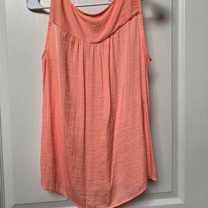 A New Day peach colored light wight sleeveless top.No buttons missing, ties at the bottom. Has a wrinkled look to it.