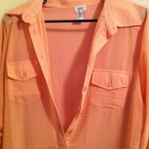 Never worn pink long sleeve button up. Cute with jeans or leggings. Cotton back.
