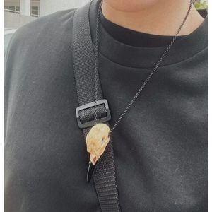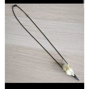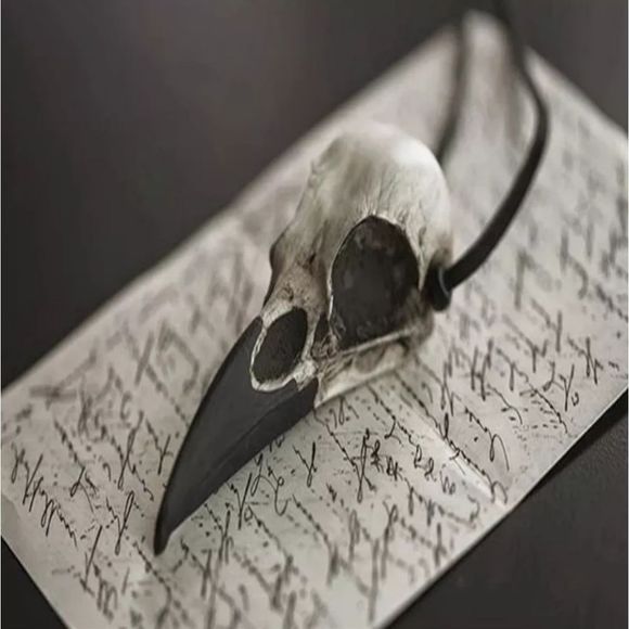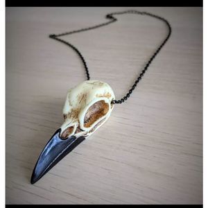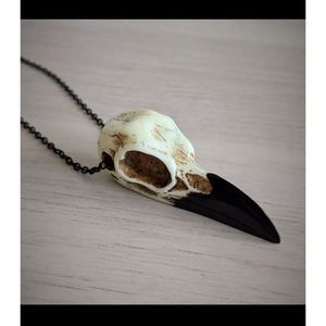 Large raven skull resin goth punk grunge black stainless steel chain necklace