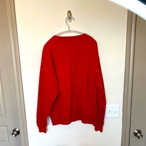 Red fruit of the loom crew neck sweatshirt. Large 90s style sweatshirt. A great basic for any winter capsule wardrobe, especially when quarantined!