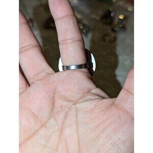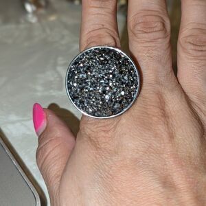 Large round gunmetal glitter size 8 silver ring