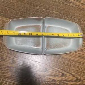 Large serving plate. Frankoma pottery. Lightly used. Heavy ceramic for durability and luxurious feel. 15 inches length, 7 inches width, 2 inches height. Perfect for hosting.