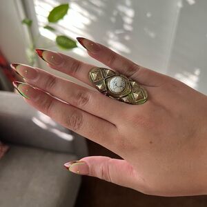 This is a large chunky with a white stone in the center. Please note this is not a real stone. This is a size 7.
