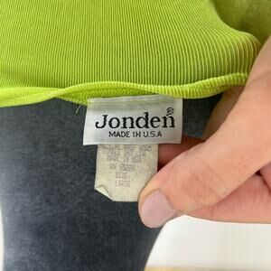 Bottom snaps with 3 snaps and has some discoloration from wearing with blue jeans