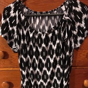 Cute silky jersey fabric lots of stretch. I'm a size 16-18. Has a cute bow. EUC. Only wore 3 times