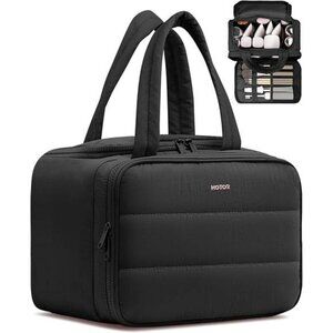 🧿WET & DRY SEPARATION: The front and rear compartments of this travel toiletry bag for women are lined with waterproof PVC, effectively separating damp items from dry ones. Say goodbye to wet towels or soaked brushes messing up your clean items. Help your toiletries stay organized and your suitcase stay fresh with HOTOR.