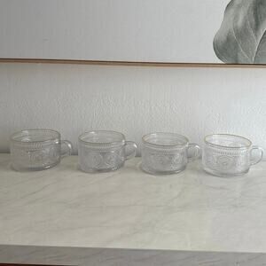 Large vintage style mugs bowls clear w/gold trim X4 beautiful