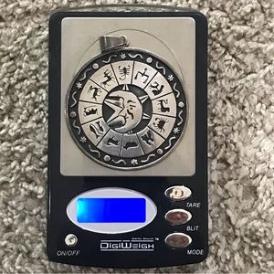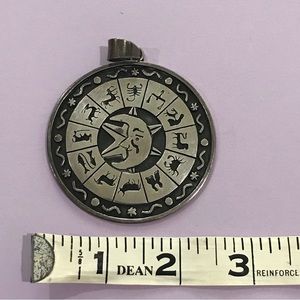 Nice large sterling pendant with the zodiac, moon, and the sun behind. Beautiful piece. Always happy to answer questions. And happy to receive offers! Cheers