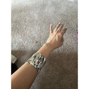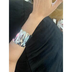 Large wide silver cuff bracelet big wavy bangle chunky bold statement bracelet