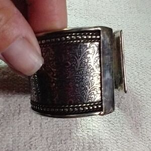 Large wide textured decorative floral flower 💐🌹 silvertone cuff bracelet