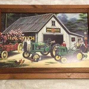 Large wood framed John Deere advertising print by Pamela C. Renfroe