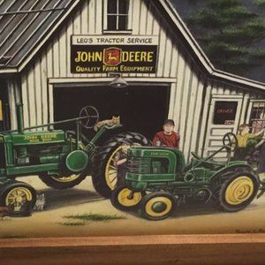 Very colorful and large wood framed John Deere advertising print by Pamela C. Renfroe. Print is approximately 16 1/2 by 10 5/8 inches and framed it is 23 1/2 by 14 1/4 inches. Print is in very nice condition with a little bit of wear, etc. And the frame has some overall wear, especially on the bottom of the left side. Still a very nice John Deere advertising picture for the John Deere or Pamela C. Renfroe collector. Pamela's prints are very collectible. The above print (Vintage Gathering) sells for about $75.00 unframed, and $300.00 framed, according to the following site: https://pamelacrenfroe.com/workszoom/1668290/vintage-gathering#/. This one is framed and being sold for far less. Thanks for looking and please make an offer on anything you want. All decent offers will be gladly accepted.