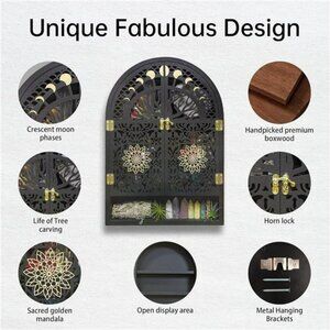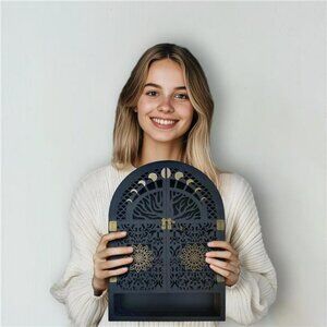 🧿Mystical & Functional: This exquisite shelf, adorned with crescent moon phases, two sacred golden mandalas, and intricate Tree of Life carvings, adds a touch of magic. The rich black finish and gleaming gold accents exude elegance and sophistication.