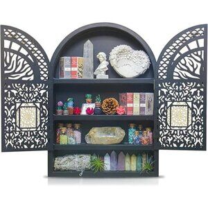 🧿Showcase Your Collections: Five spacious shelves offer ample room to display crystals, gemstones, essential oils, small plants, or other decorative items, transforming them into an enchanting focal point.
