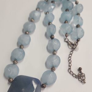 This elegant blue beaded necklace adds a touch of sophistication to any outfit. Perfect for any occasion.