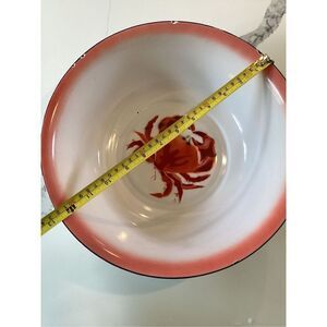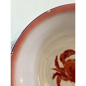 Large Crab Enamelware Bowl Pink White