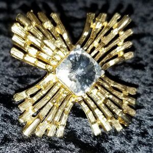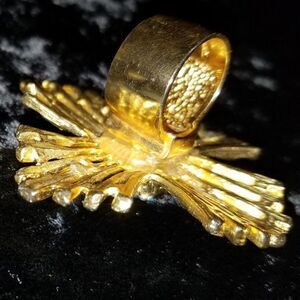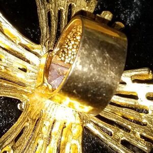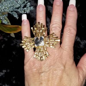 STUNNING!! This Gold toned Celtic Cross with a large squared solitaire will definitely turn heads!!! Has a cigar band and is about a 6.5-7 in size.